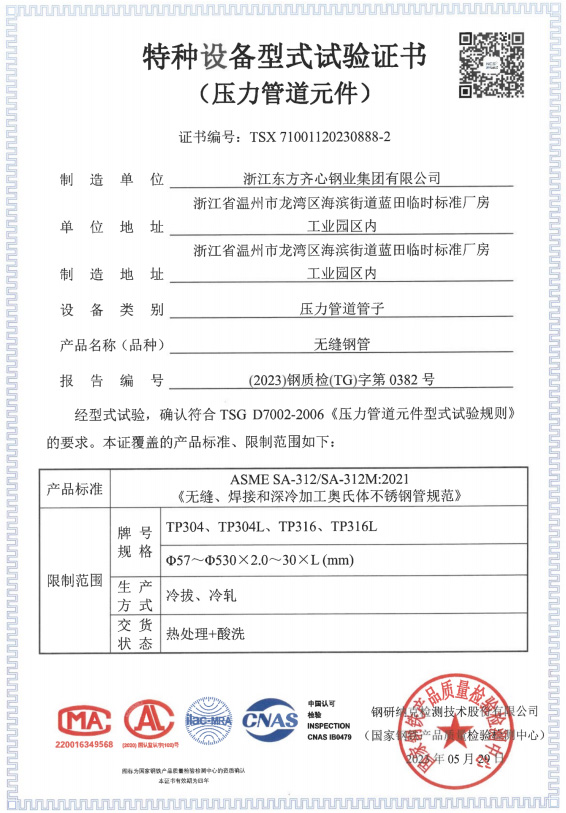 浙江東方齊心以不銹鋼系列產(chǎn)品為主導(dǎo),品種有不銹鋼管、奧氏體不銹鋼管、高溫合金鋼管、雙相不銹鋼管、鎳基合金管、冷凝器用管、U形管、核電管、不銹鋼管件、法蘭、閥門等。規(guī)格有6-2020x0.8-60mm,Ф16-25長度可達(dá)33m。公司擁有精密制造鋼管的各類機(jī)械設(shè)備25臺(tái)(套),其中各類冷軋管機(jī)15臺(tái), 冷拔機(jī)10臺(tái),天然氣熱處理爐2套。